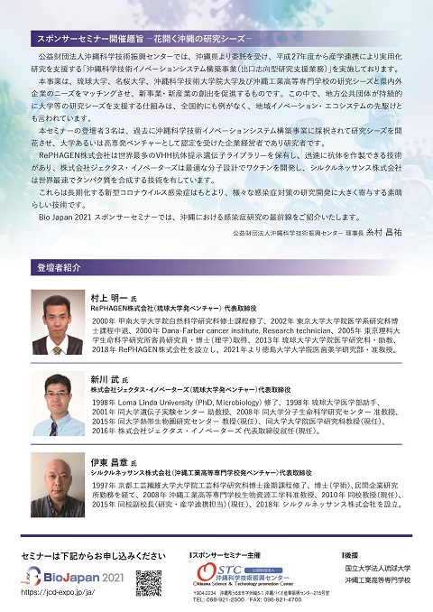 当社代表 伊東昌章がBioJapan2021のスポンサーセミナーに 「新型コロナウイルスワクチン接種後の有効性を評価する抗体検査キットの開発」の 講演で登壇いたします。